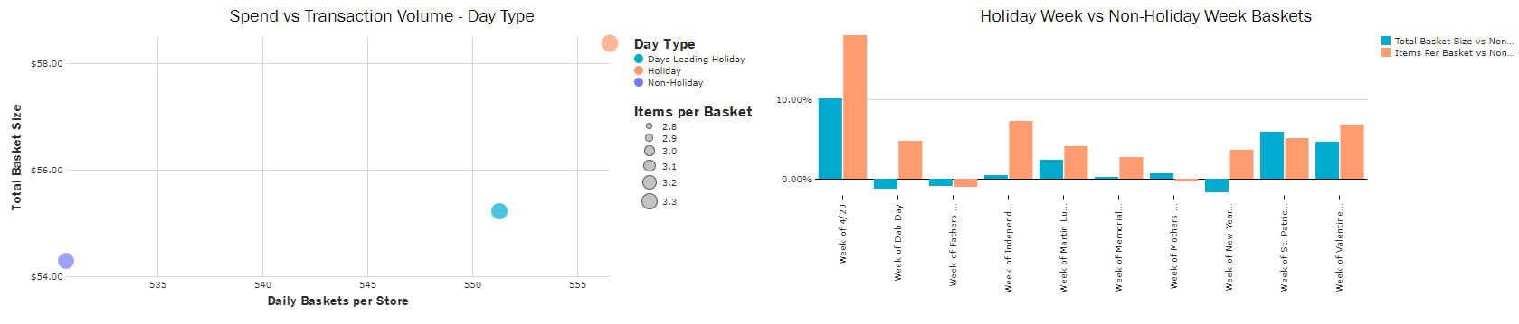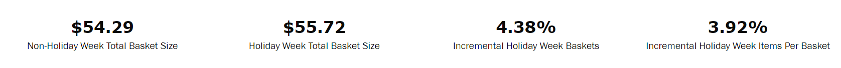 Holiday Week vs Non-Holiday Week Baskets evaluated the incremental Basket Size and Items per Basket