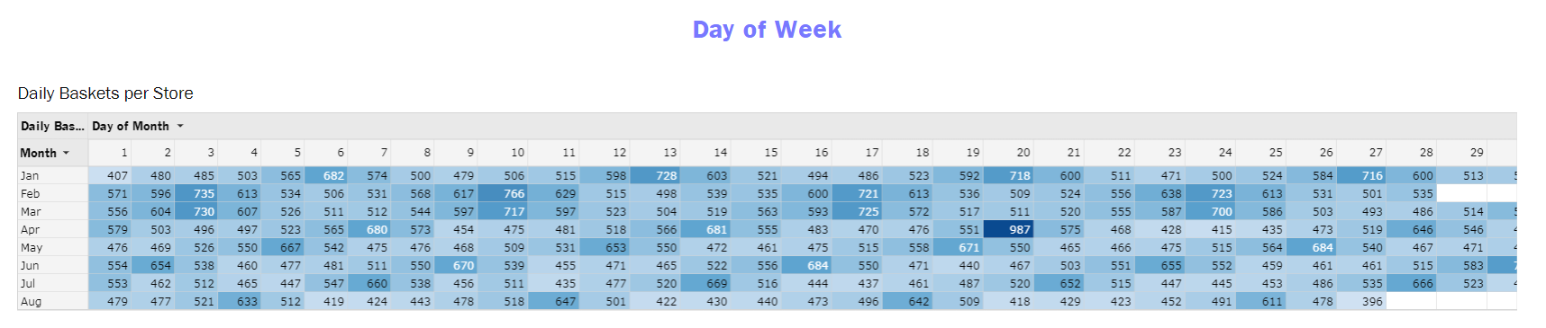 Use the top calendar widgets to track average number of baskets on a daily basis.