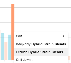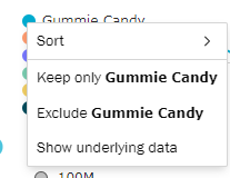 - Exclude any outlier data to see some of the smaller categories by right clicking the category and clicking "Exclude"