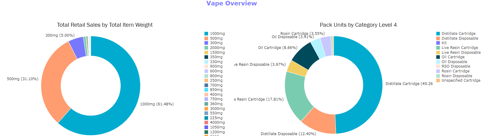 Track total share of item weight and share of Vape types at category level 4.
