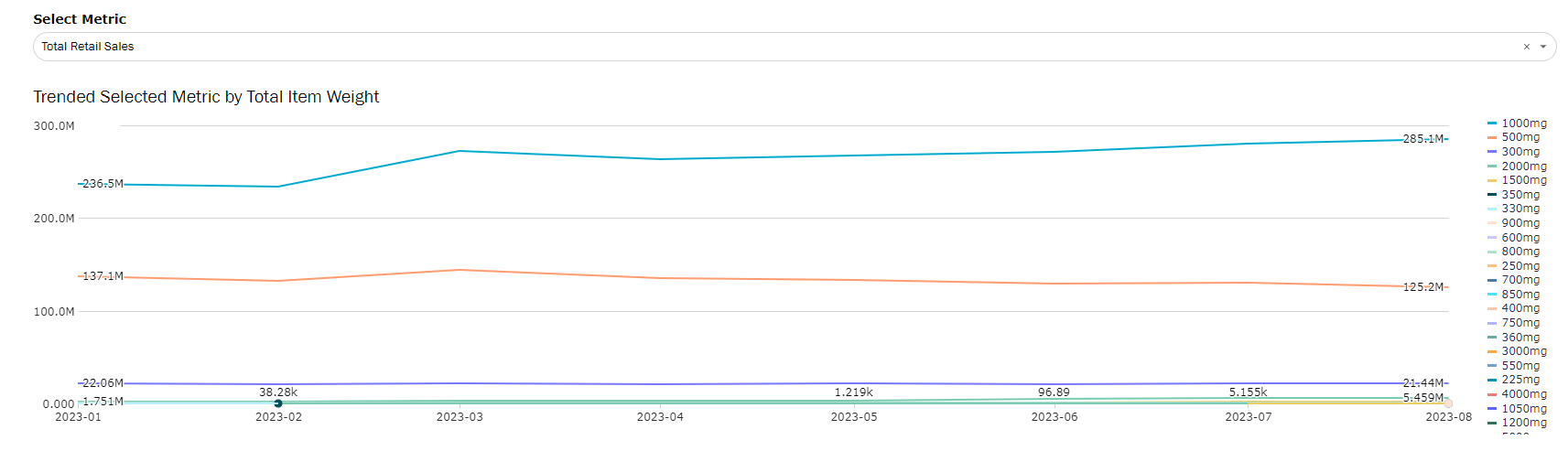 Follow trends of the most popular vape weights over a selected time period.