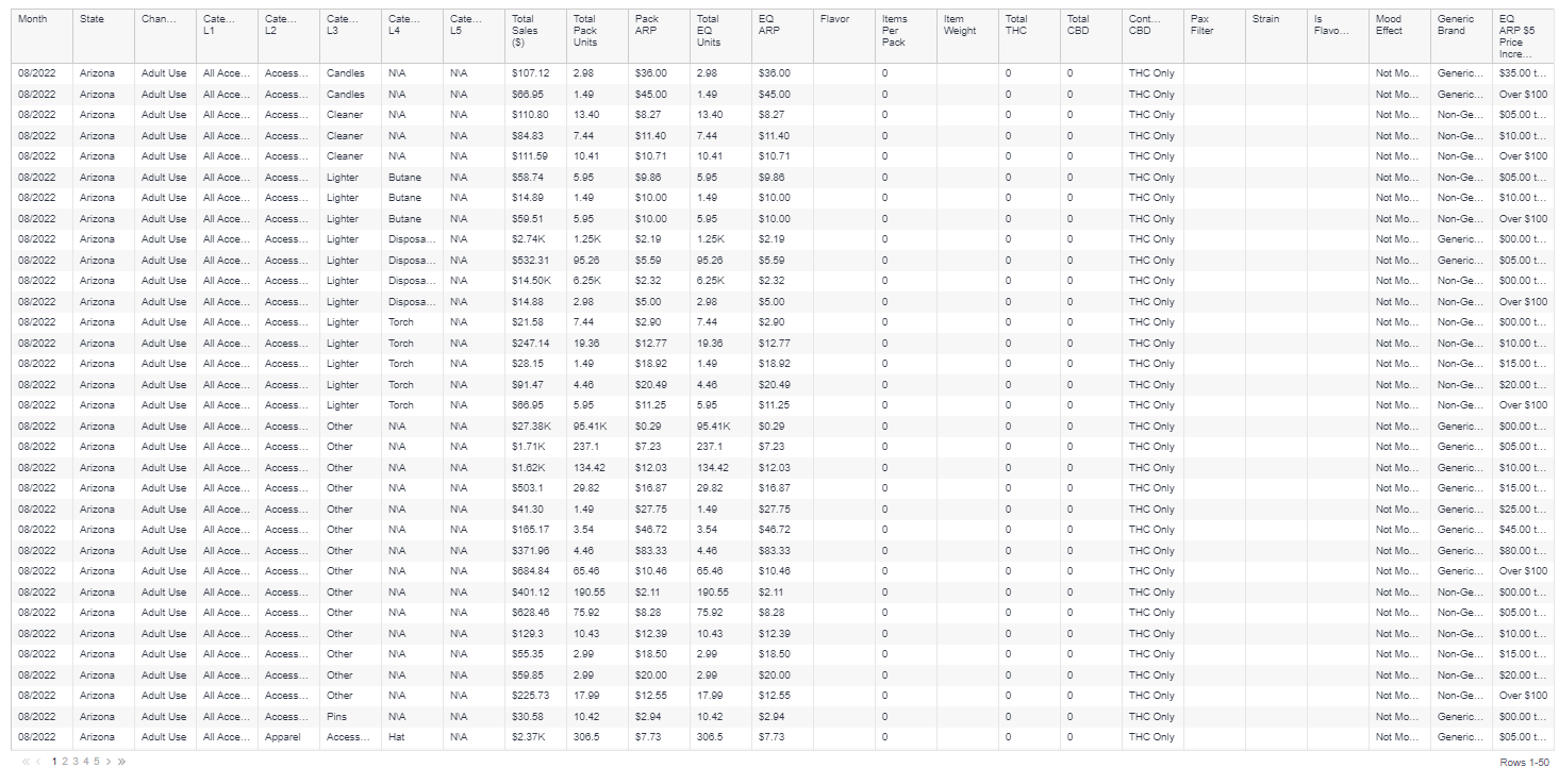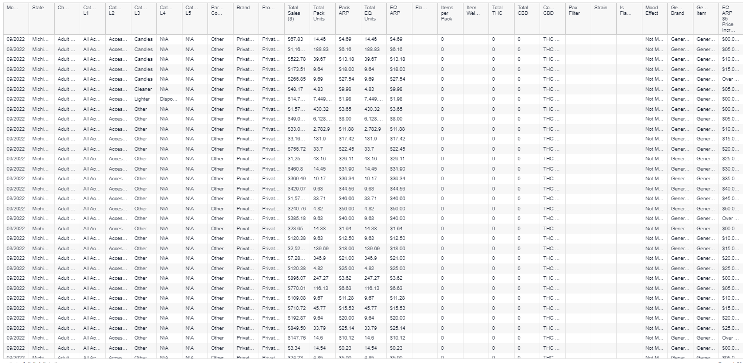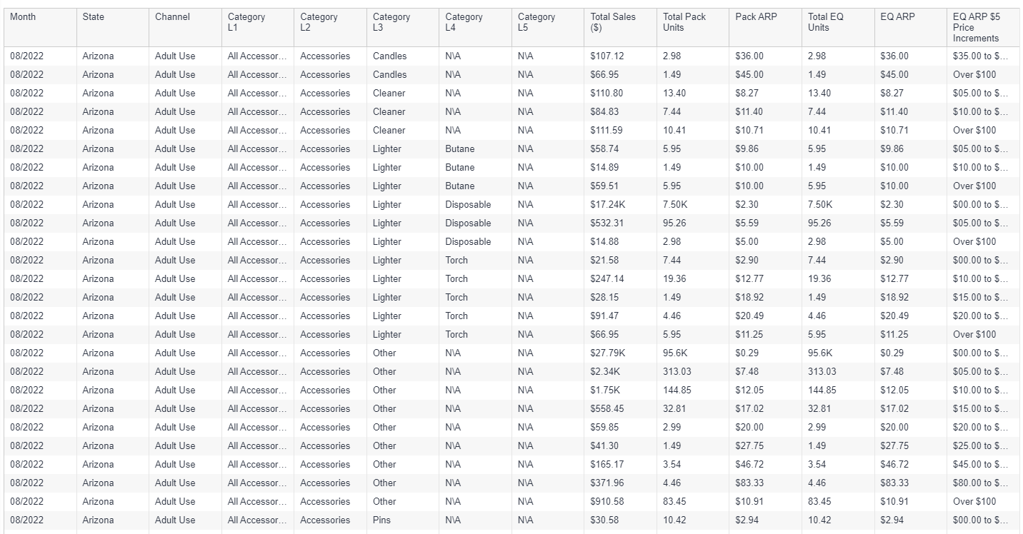 Category, brand, and product level tables in an easily downloadable format.