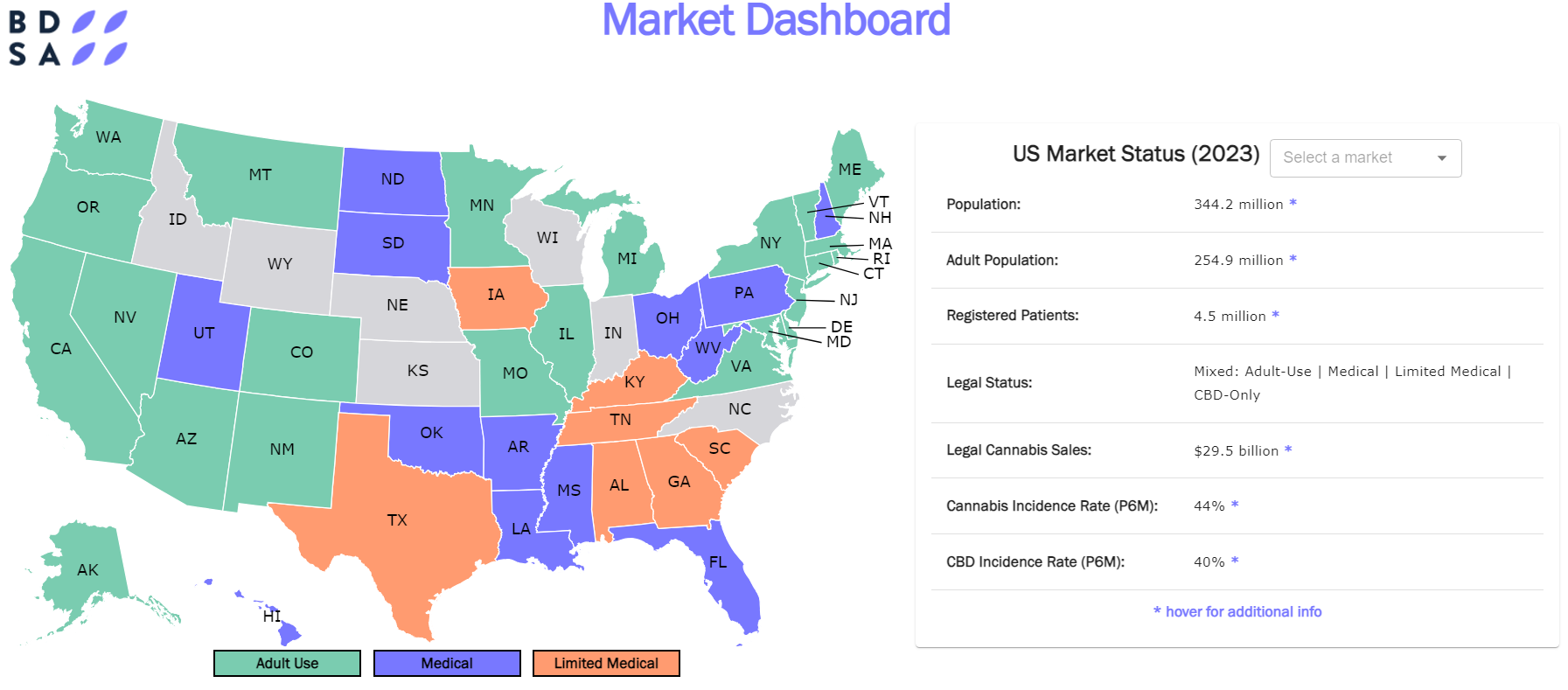 - Legal Status (Adult Use, Medical, CBD Only)