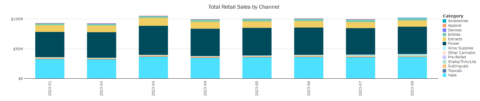 Broken into sections with category specific characteristics for Flower, Extracts, and Ingestibles.