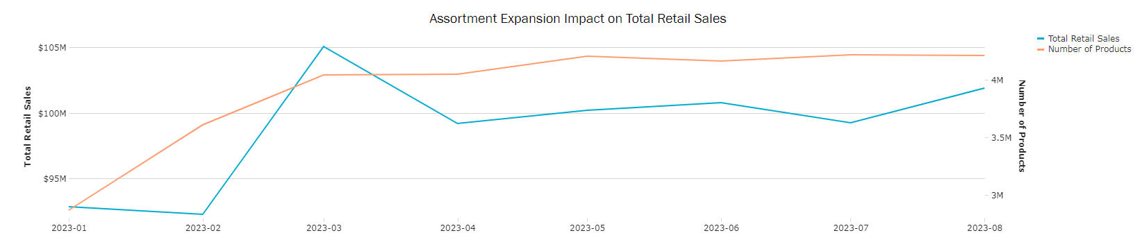 Track the impact of assortment expansion on total sales.