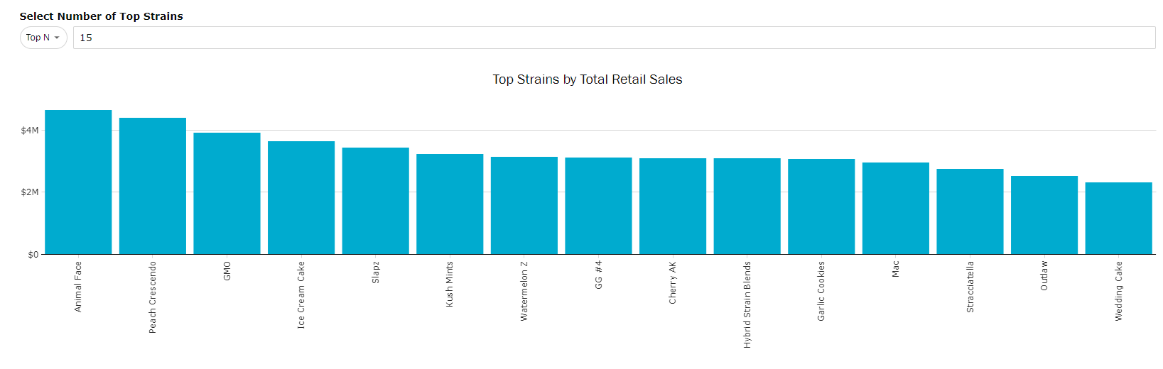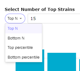 - Use the "Top N" to toggle the view of Top Strains, such as seeing bottom N performing strains, top or bottom percentile, or expanding out past 15.