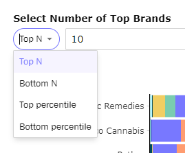 - Change the the drop down to "Bottom N" to optimize assortment by identifying low performing brands in your stores