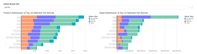 - A brand's tier assignment can change based on selected filters. For example, a brand's entire portfolio may be majority mid-tier, but in a specific category, or pack size they may be more premium.