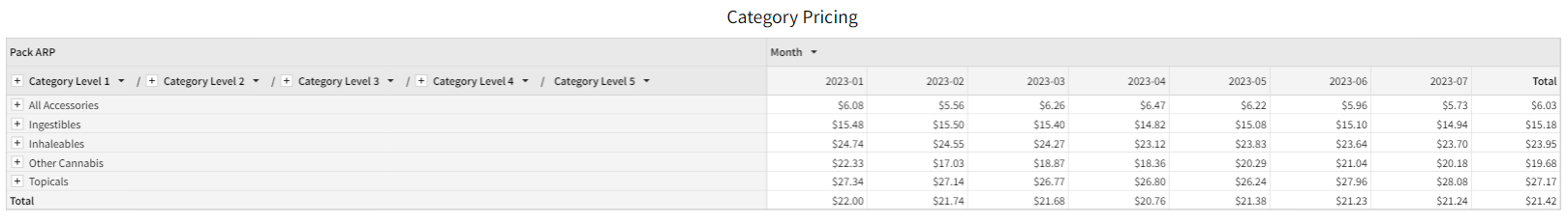 Get total trending granularity into the average retail price. Click the plus icon to expand into more granular subcategories.