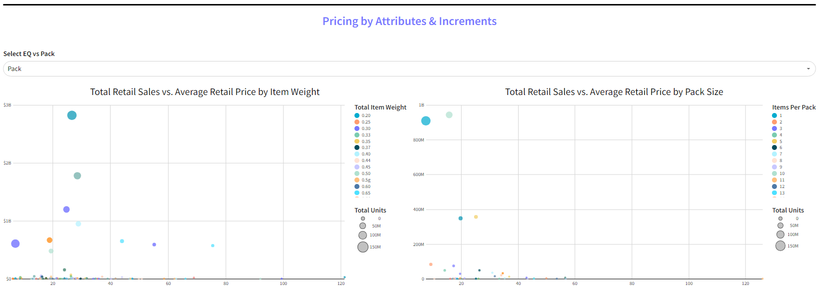 View pricing distribution by weight and pack size.