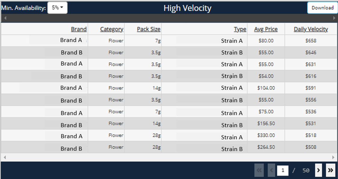 - The minimum availability filter allows users to toggle to only see the velocity for brands and products that are greater than or equal to a certain percentage of distribution.