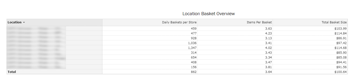 An overview of basket metrics by retail location and category