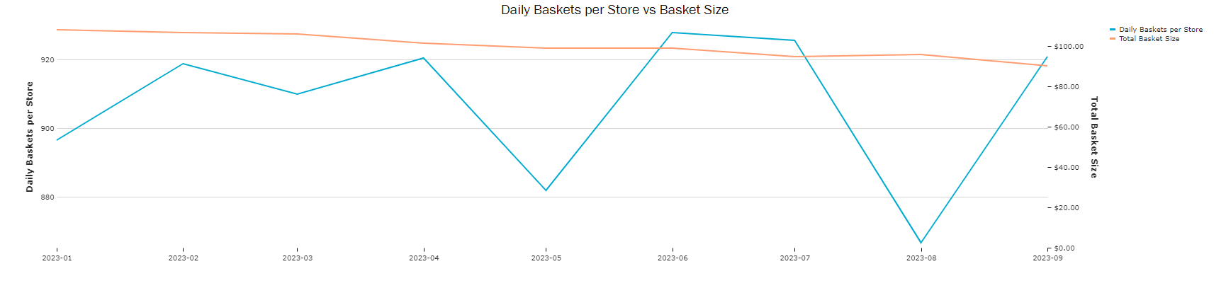 Use this visual to track basket size and number of baskets across available time periods.